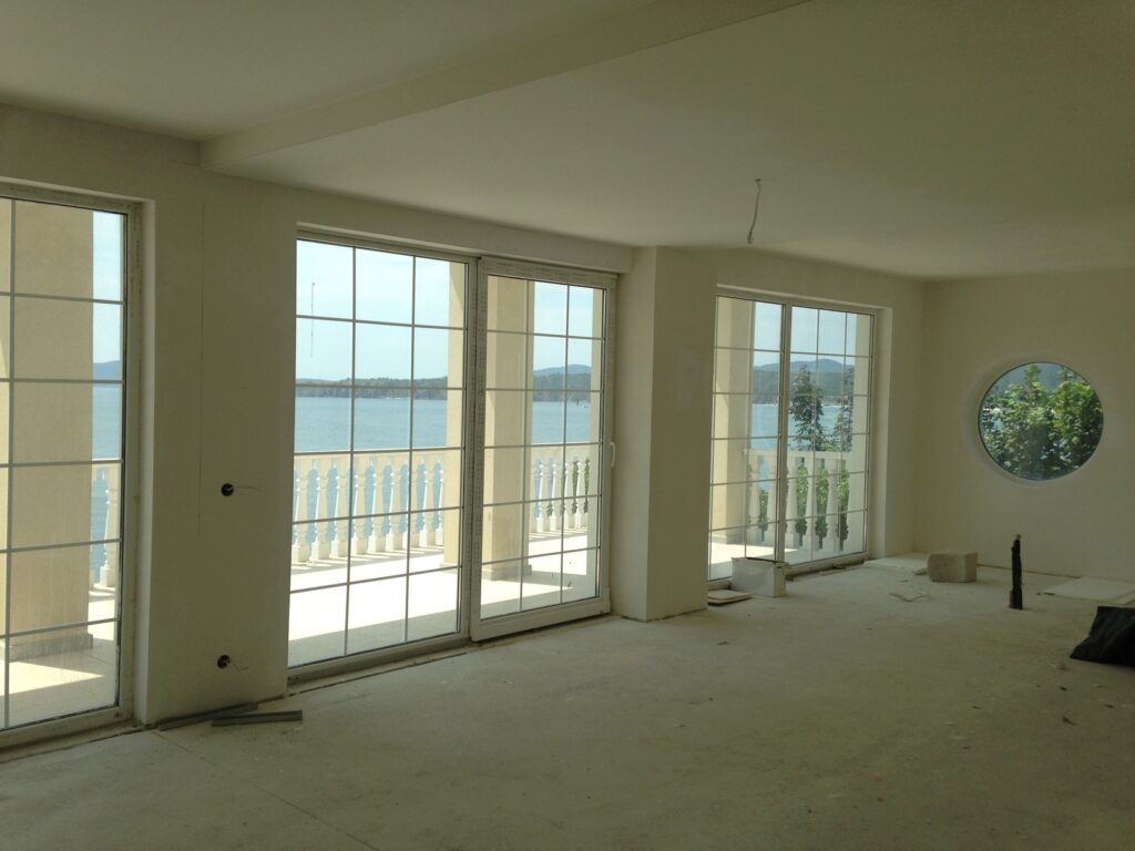 • Das Haus wird mit einer hochwertigen Verarbeitung nach dem bulgarischen Standard angeboten, die nach Ihrem Geschmack und Stil fertiggestellt werden kann: Alle Kommunikations-, Strom-, Klima-, TV-, Fußbodenheizungen, Abwasserkanäle, Wände und Decken sind fertig. Bild.